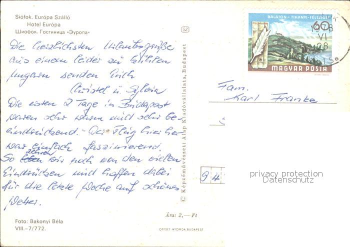 old postcard Siofok Hotel Europa postalisch gelaufen Erhaltung siehe scans
