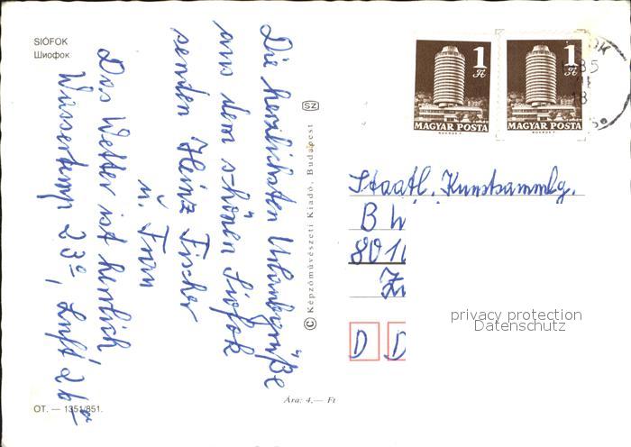 old postcard Siofok Hotel Hochhaus Kanal Segeln Plattensee postalisch gelaufen Erhaltung siehe scans