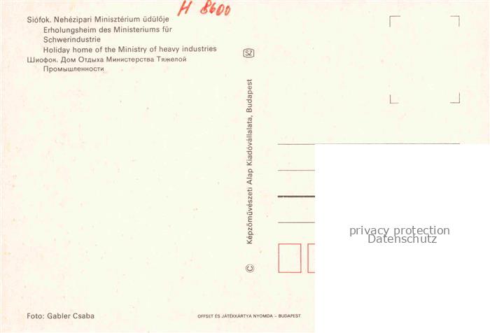 74005758 Siofok HU Minisztérium uedueloje Erholungsheim des Ministeriums fuer Schwerindustrie postalisch nicht gelaufen Erhaltung siehe scans [FriedD77] KatCode: 11550