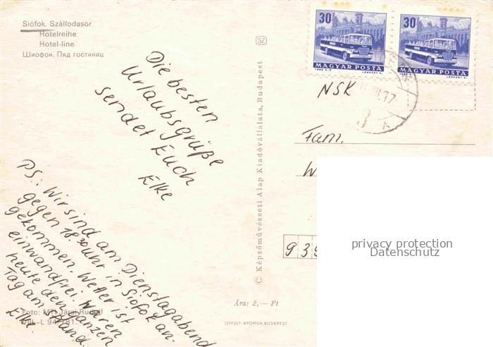 74136714 old postcard Siofok Siofokrol HU Szállodasor Hotelreihe am Balaton postalisch gelaufen Fliegeraufnahme Erhaltung siehe scans [FriedD77] KatCode: 11550