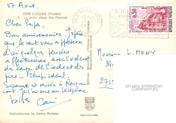 13522596 carte postale Sion sur Ocean Plage des Pineaux postalisch gelaufen Erhaltung siehe scans [KathaD81] KatCode: 11170044144197