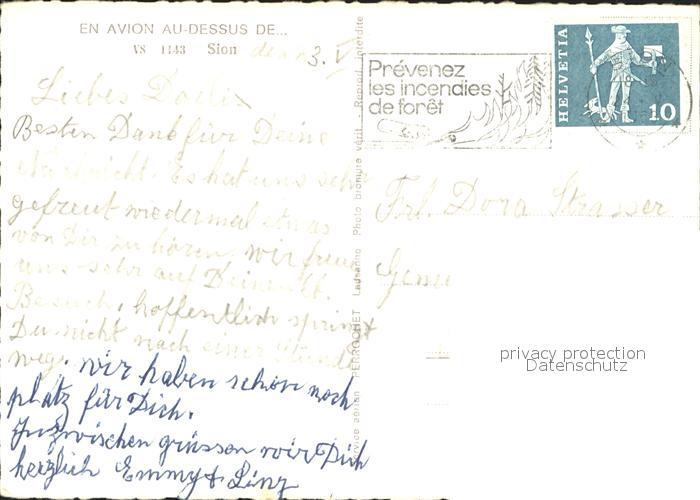11635524 alte Postkarte Sion VS Vue aerienne Chateau postalisch gelaufen Erhaltung siehe scans KatCode: 11470230745712