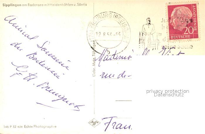 43492815 alte Postkarte Sipplingen Partie am Bodensee Fliegeraufnahme mit Heidenh?jlen und S?ntis postalisch gelaufen Erhaltung siehe scans [LiesaD40] KatCode: 11110008435053
