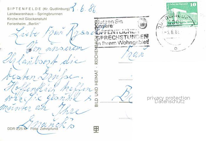 72640387 alte Postkarte Siptenfelde Landwarenhaus Springbrunnen Kirche Glockenstuhl Ferienheim Berlin postalisch gelaufen Erhaltung siehe scans [WerneD78] KatCode: 11110015085290