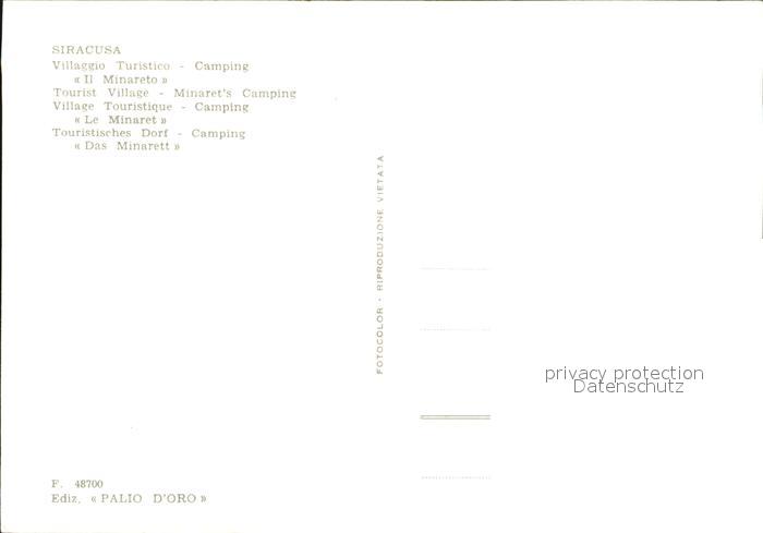 Siracusa Camping Villagio Turistico postalisch nicht gelaufen Erhaltung siehe scans [LiesaD40 kt122box]