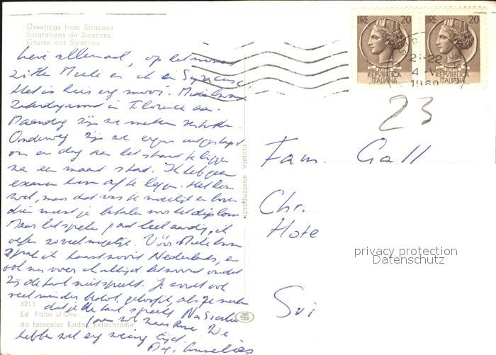 old postcard Siracusa Darsena Porto Piccolo Nave Teatro Greco Corso Matteotti postalisch gelaufen Erhaltung siehe scans