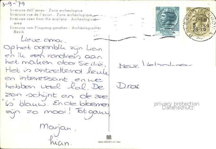 old postcard Siracusa Fliegeraufnahme postalisch gelaufen Erhaltung siehe scans
