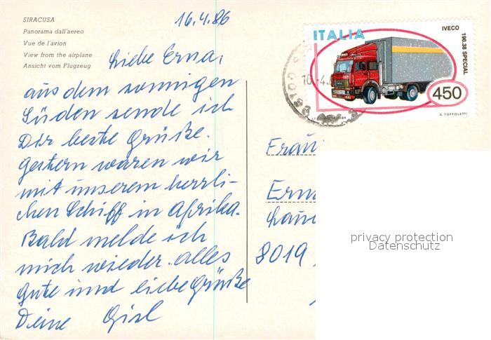 old postcard Siracusa Fliegeraufnahme postalisch gelaufen Erhaltung siehe scans [WerneD78]