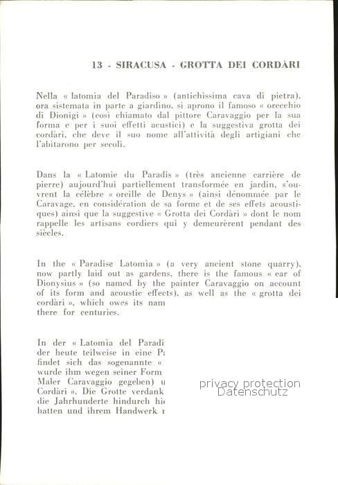 Siracusa Grotta dei Cordari postalisch nicht gelaufen Erhaltung siehe scans
