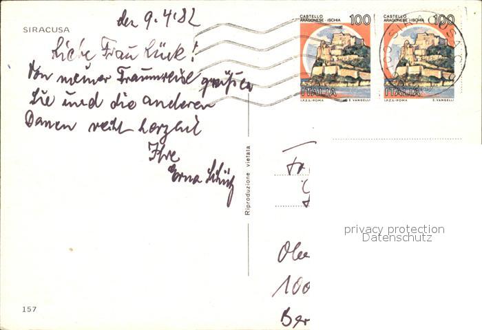 old postcard Siracusa Hafen postalisch gelaufen Erhaltung siehe scans