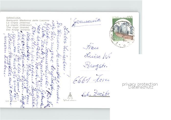 old postcard Siracusa Kripte postalisch gelaufen Erhaltung siehe scans