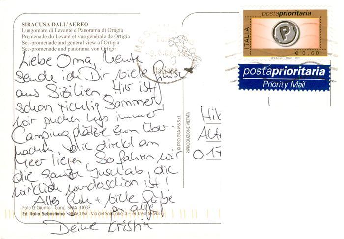 73905389 old postcard Siracusa Syrakus Sicilia Fliegeraufnahme postalisch gelaufen Erhaltung siehe scans [FriedD77] KatCode: 11240