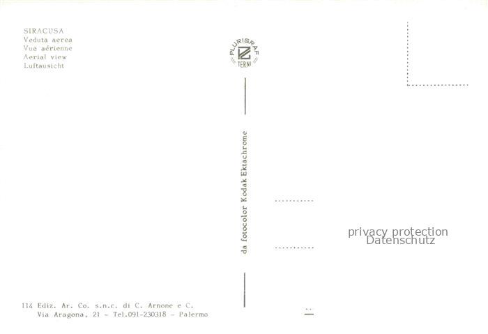 74085165 SIRACUSA Syrakus Sicilia IT Fliegeraufnahme postalisch nicht gelaufen Erhaltung siehe scans [WerneD78] KatCode: 11240