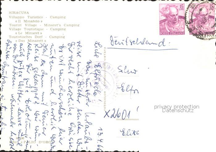 old postcard Siracusa Villaggio Turistico postalisch gelaufen Erhaltung siehe scans