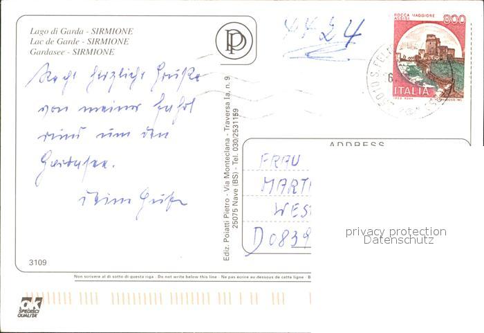 old postcard Sirmione Lago di Garda Burg postalisch gelaufen Erhaltung siehe scans