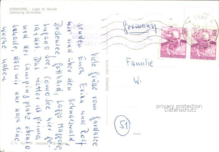old postcard Sirmione Lago di Garda Campingplatz postalisch gelaufen Erhaltung siehe scans