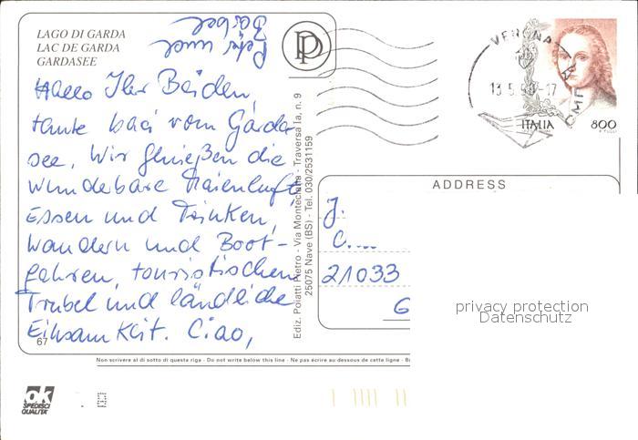 old postcard Sirmione Lago di Garda Castello Porto Schloss Hafen Gardasee postalisch gelaufen Erhaltung siehe scans