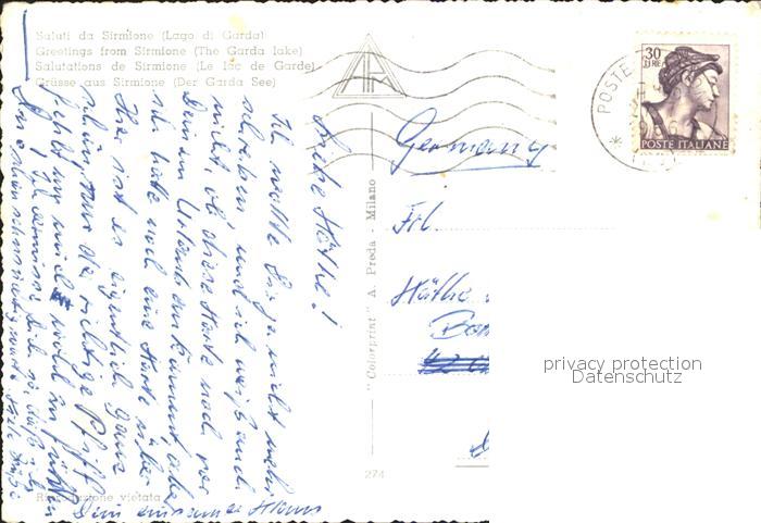 old postcard Sirmione Lago di Garda Castello Scaligero Grotte di Catullo postalisch gelaufen Erhaltung siehe scans