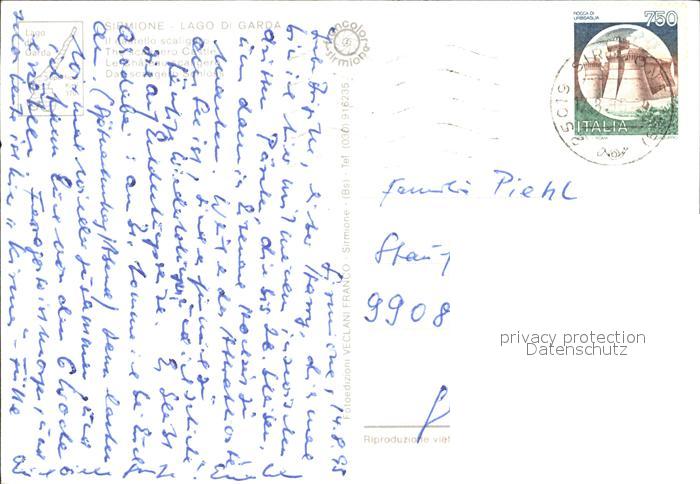 old postcard Sirmione Lago di Garda Castello scaligero Schloss Gardasee postalisch gelaufen Erhaltung siehe scans