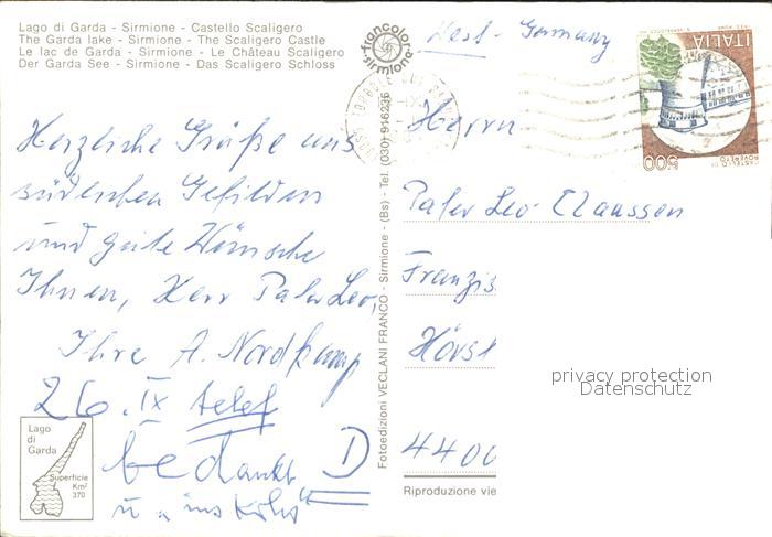 old postcard Sirmione Lago di Garda Castello Scaligero Schloss Hafen Gardasee postalisch gelaufen Erhaltung siehe scans