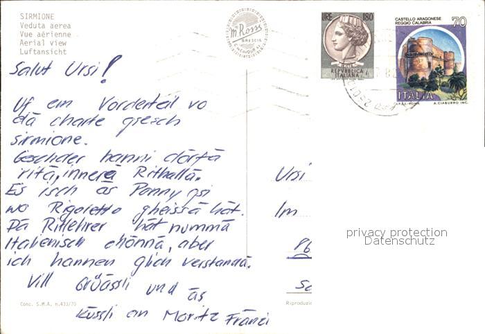 old postcard Sirmione Lago di Garda Fliegeraufnahme postalisch gelaufen Erhaltung siehe scans