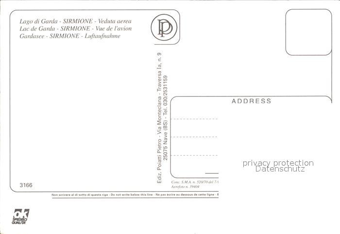 Sirmione Lago di Garda Fliegeraufnahme postalisch nicht gelaufen Erhaltung siehe scans