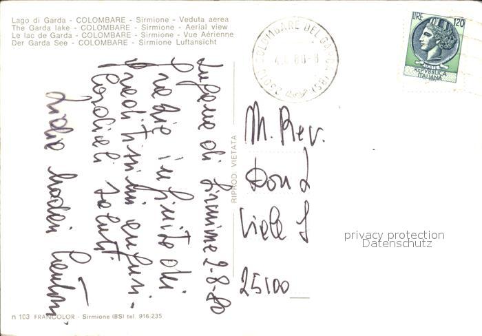 old postcard Sirmione Lago di Garda Fliegeraufnahme Colombare postalisch gelaufen Erhaltung siehe scans