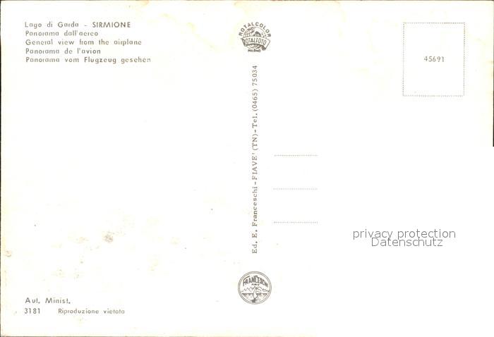 Sirmione Lago di Garda Fliegeraufnahme Lago di Garda Burg postalisch nicht gelaufen Erhaltung siehe scans