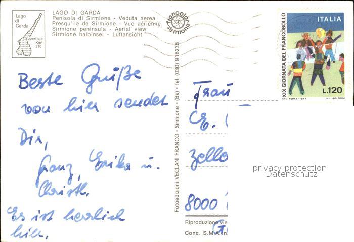 old postcard Sirmione Lago di Garda Fliegeraufnahme Penisola postalisch gelaufen Erhaltung siehe scans [LiesaD40]