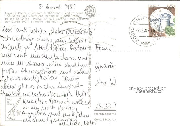 old postcard Sirmione Lago di Garda Fliegeraufnahme Penisola postalisch gelaufen Erhaltung siehe scans