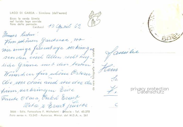 old postcard Sirmione Lago di Garda Gardasee Fliegeraufnahme postalisch gelaufen Erhaltung siehe scans [FriedD77]