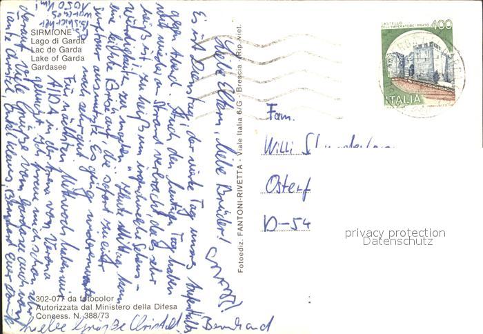 old postcard Sirmione Lago di Garda Gardasee Fliegeraufnahme postalisch gelaufen Erhaltung siehe scans