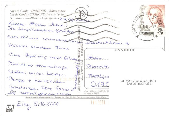 old postcard Sirmione Lago di Garda Halbinsel Fliegeraufnahme postalisch gelaufen Erhaltung siehe scans