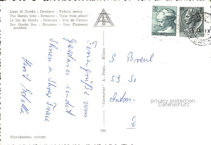 old postcard Sirmione Lago di Garda Lago di Garda Gardasee Flugaufnahme postalisch gelaufen Erhaltung siehe scans