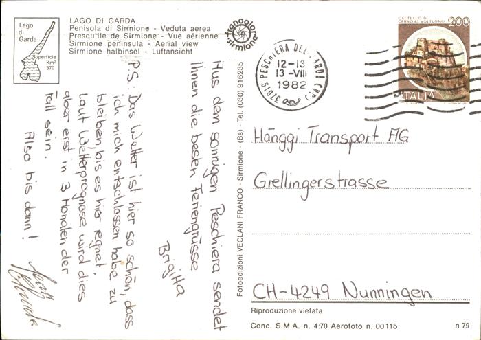 old postcard Sirmione Lago di Garda Penisola veduta aerea postalisch gelaufen Erhaltung siehe scans