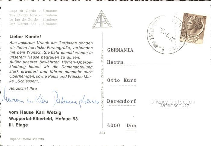 old postcard Sirmione Lago di Garda Promenade Strassencafes Restaurant Hotel Eden postalisch gelaufen Erhaltung siehe scans