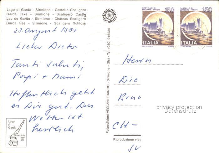 old postcard Sirmione Lago di Garda Schloss postalisch gelaufen Erhaltung siehe scans