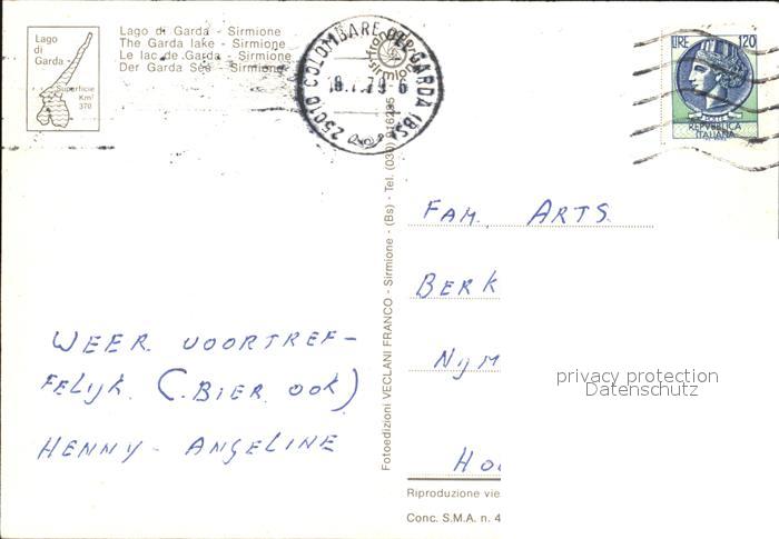 old postcard Sirmione Lago di Garda Teilansichten Fliegeraufnahme postalisch gelaufen Erhaltung siehe scans