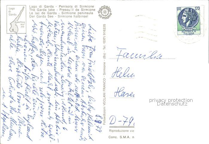 Sirmione Lago di Garda Veduta aerea Castello Penisola postalisch nicht gelaufen Erhaltung siehe scans