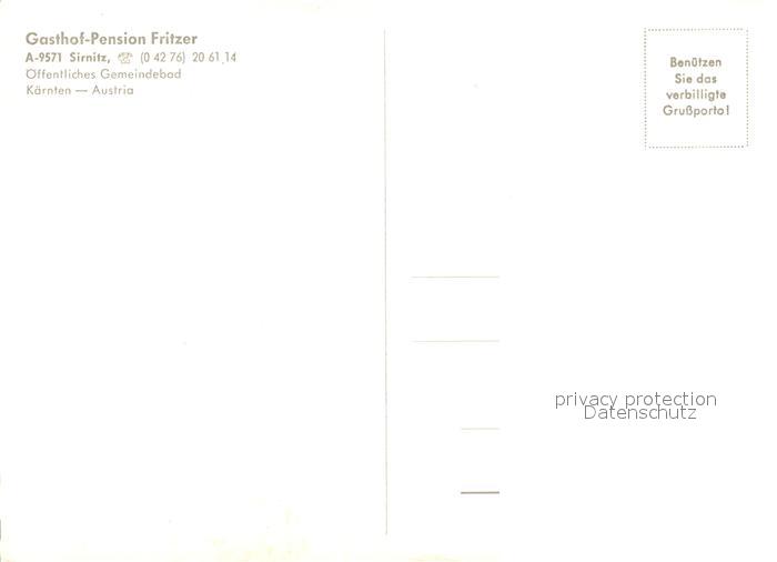 73338898 Sirnitz Kaernten Gasthaus Pension Fritzer Freibad postalisch nicht gelaufen Erhaltung siehe scans [LiesaD40] KatCode: 11390212021001
