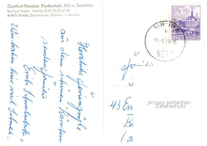 13011854 alte Postkarte Sirnitz Kaernten Gasthof Fischerhof postalisch gelaufen Erhaltung siehe scans [NatalD47] KatCode: 11390212021001