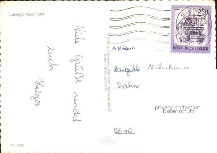 72000754 alte Postkarte Sirnitz Kaernten Ludwig Alpenhotel Sessellift postalisch gelaufen Erhaltung siehe scans KatCode: 11390212021001