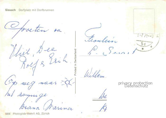 34143619 alte Postkarte Sissach BL Dorfplatz mit Dorfbrunnen postalisch gelaufen Erhaltung siehe scans [FriedD77] KatCode: 11470040095734