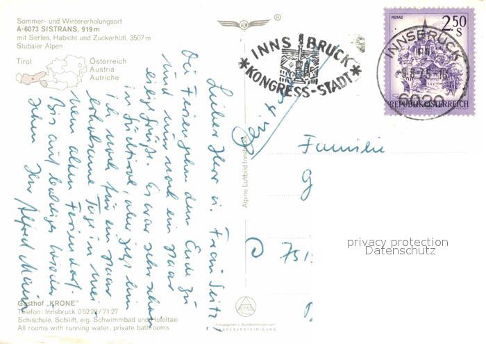 72773521 alte Postkarte Sistrans mit Stubaier Alpen Fliegeraufnahme postalisch gelaufen Erhaltung siehe scans [FriedD77] KatCode: 11390332070353
