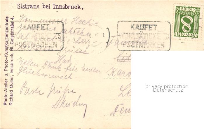 73571875 alte Postkarte Sistrans Panorama postalisch gelaufen Erhaltung siehe scans [WerneD78] KatCode: 11390332070353