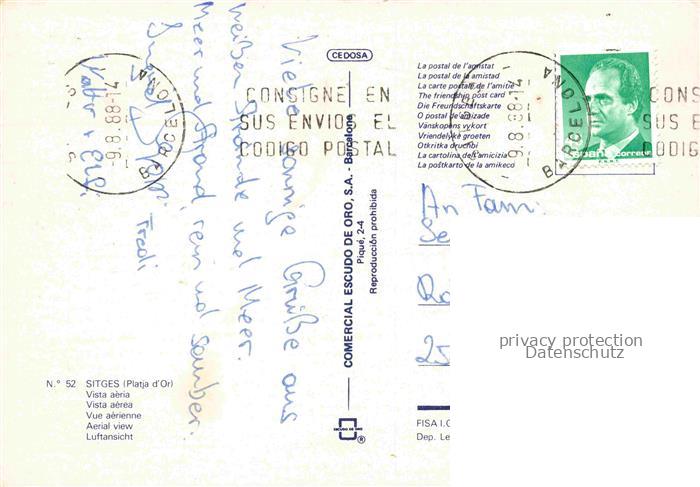 74085683 old postcard SITGES Costa Dorada ES Fliegeraufnahme postalisch gelaufen Erhaltung siehe scans [WerneD78] KatCode: 11510