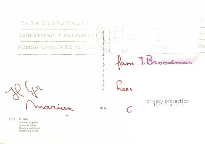 old postcard Sitges Kirche Garten postalisch gelaufen Erhaltung siehe scans [NatalD47]