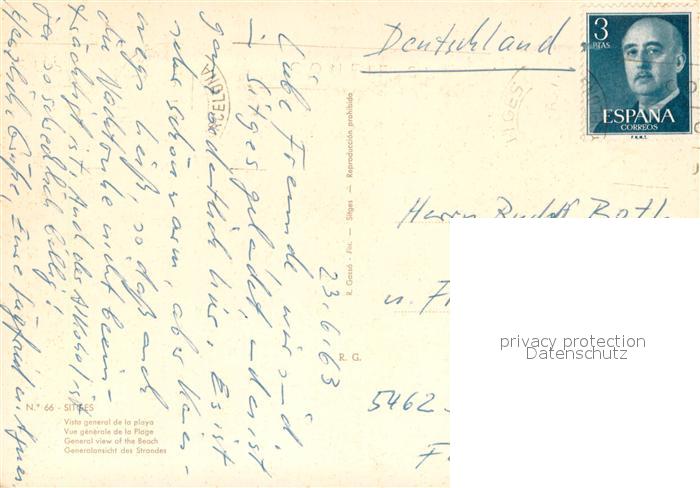old postcard Sitges La playa y hoteles vista aérea postalisch gelaufen Erhaltung siehe scans [FriedD77]