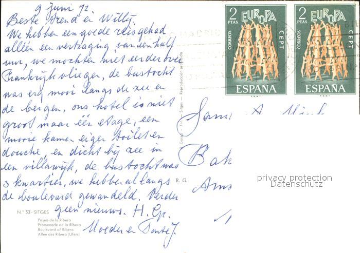 old postcard Sitges Paseo de la Ribera postalisch gelaufen Erhaltung siehe scans [WerneD78 kv016box]