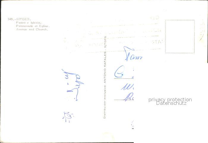 old postcard Sitges Paseo Iglesia postalisch gelaufen Erhaltung siehe scans